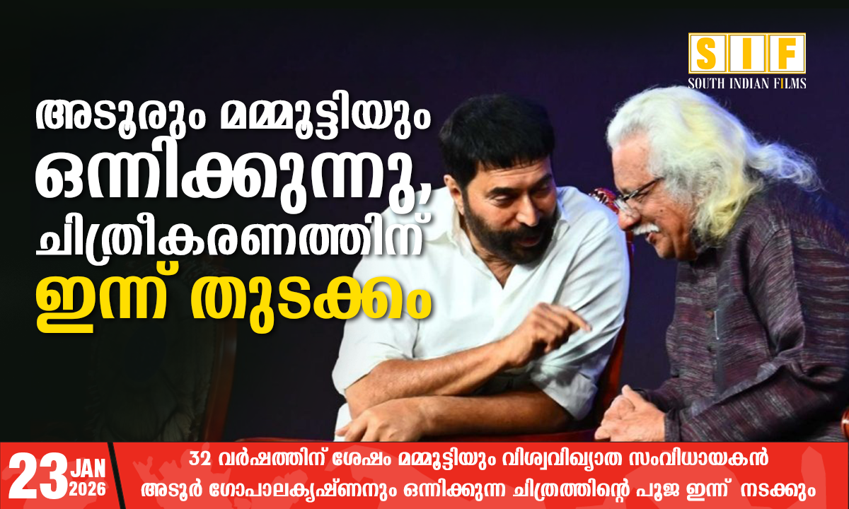 മലയാള സിനിമയുടെ ചരിത്രത്തിൽ ഒരുപാട് സ്വാധീനം ചെലുത്തിയ സൃഷ്ടിപരമായ കൂട്ടുകെട്ട് മൂന്നു പതിറ്റാണ്ടിന് ശേഷം വീണ്ടും ഒരുങ്ങുന്നു. ഇതിഹാസ സംവിധായകൻ അടൂർ ഗോപാലകൃഷ്ണനും മെഗാസ്റ്റാർ മമ്മൂട്ടിയും വീണ്ടും ഒന്നിക്കുന്ന പുതിയ ചിത്രത്തിന്റെ ചിത്രീകരണം ഇന്ന് ആരംഭിക്കും. 1990-ൽ പുറത്തിറങ്ങിയ, അന്താരാഷ്ട്ര തലത്തിൽ വരെ ശ്രദ്ധ നേടിയ ‘മതിലുകൾ’ എന്ന ചിത്രത്തിന് ശേഷം ഇരുവരും ഒരുമിക്കുന്ന ആദ്യ സിനിമയാണിത്.